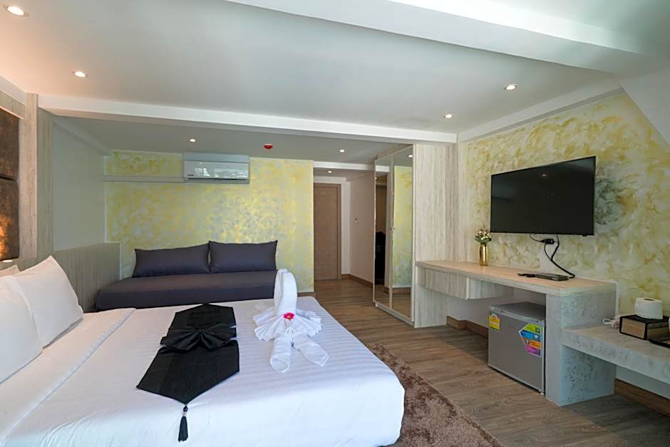 This family room's special feature is the pool with a view. The family room's kitchenette, which features a refrigerator and an electric kettle, is available for cooking and storing food. The family room provides air conditioning, soundproof walls, a terrace with sea views as well as a private bathroom featuring a walk-in shower. The unit offers 3 beds.